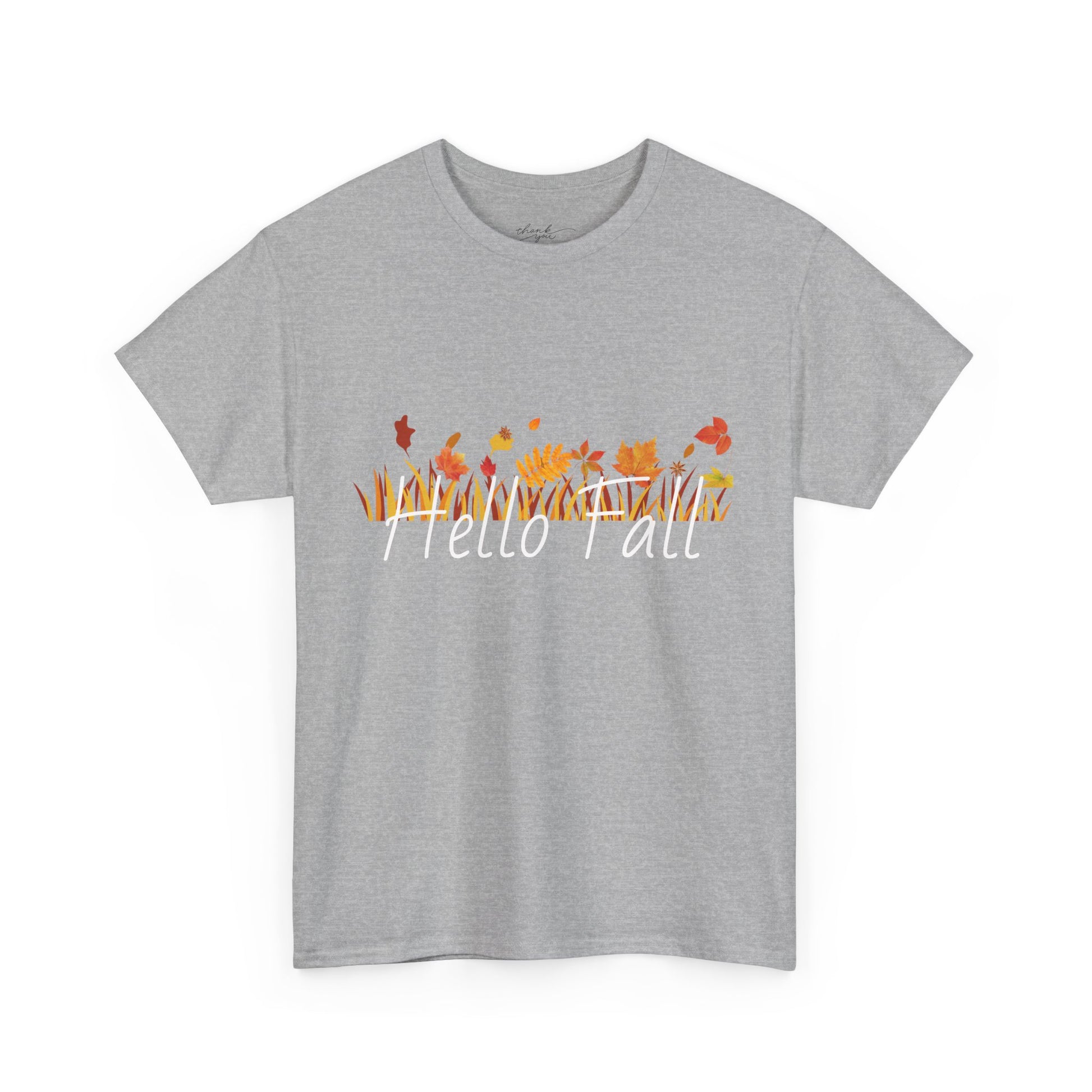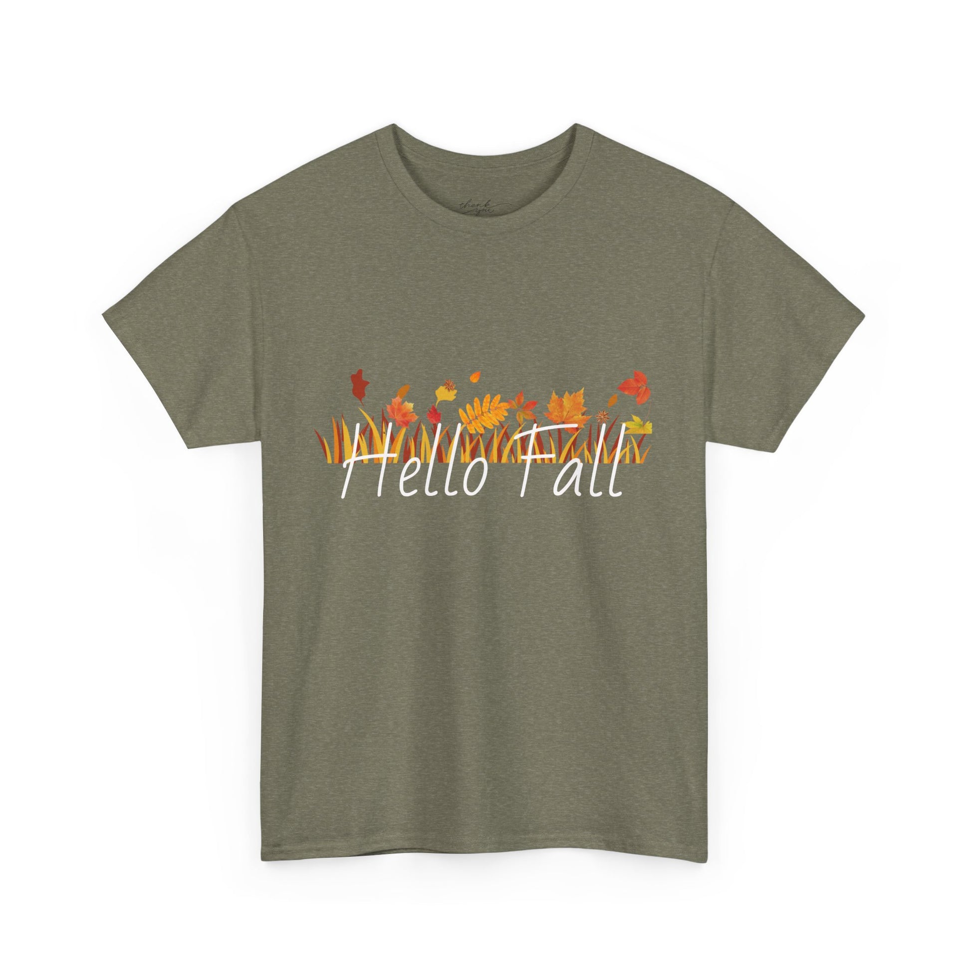 Embrace the cozy charm of autumn with this Unisex Heavy Cotton Tee. Featuring a beautiful 'Hello Fall' print on the front and an elegant leaf design on the back, this tee captures the essence of the season. It exudes a relaxing, inviting vibe perfect for crisp fall days. Ideal for casual gatherings, pumpkin patch visits, or cozy evenings around a bonfire, this shirt complements any wardrobe. It’s perfect for nature lovers, friends, and family who appreciate seasonal flair. Celebrate fall festivities, Halloween gatherings, or Thanksgiving dinners with this stylish piece that brings warmth and joy to every occasion.